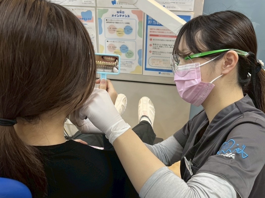 ホワイトニング剤を洗い流し、歯の色を確認します。