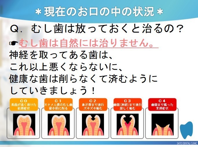 また、当院はむし歯・歯周病の定期予防型歯科医院です。歯は財産であり、治療した歯、失った歯は元には戻りません。治療後の定期メインテナンスを必須としております。「気になるところだけ」、「痛い時だけ」、「とにかく早く」という御希望の方は、当院の治療は向かないかと思います。